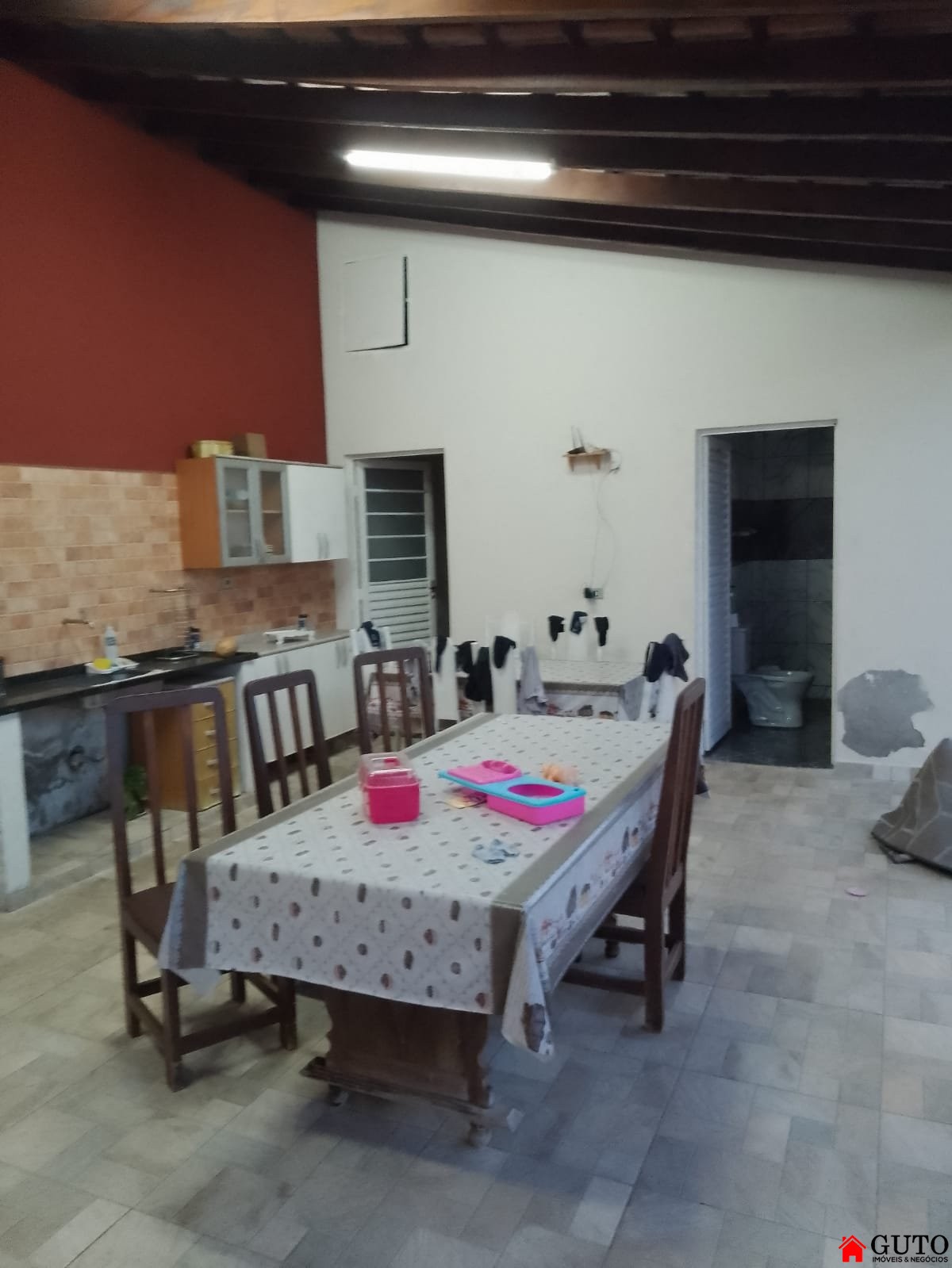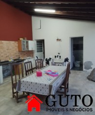 Casa térrea com 02 dormitórios, salas de estar e jantar, cozinha com armários,02banheiros internos, edícula com churrasqueira e quarto de despejo com banheiro, garagem coberta para 03 carrros com portão eletrônico.